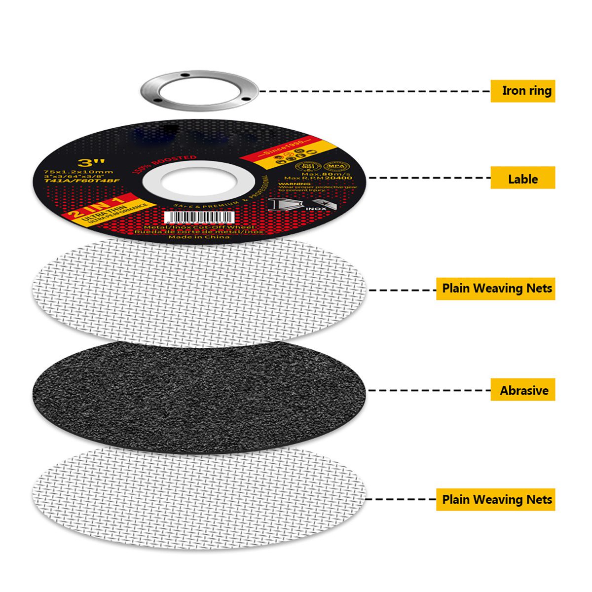 - Технология армирования двойной стеклосеткой: Повышение устойчивости отрезного круга к растрескиванию и адаптация к высокоскоростной работе 20 300 об/мин